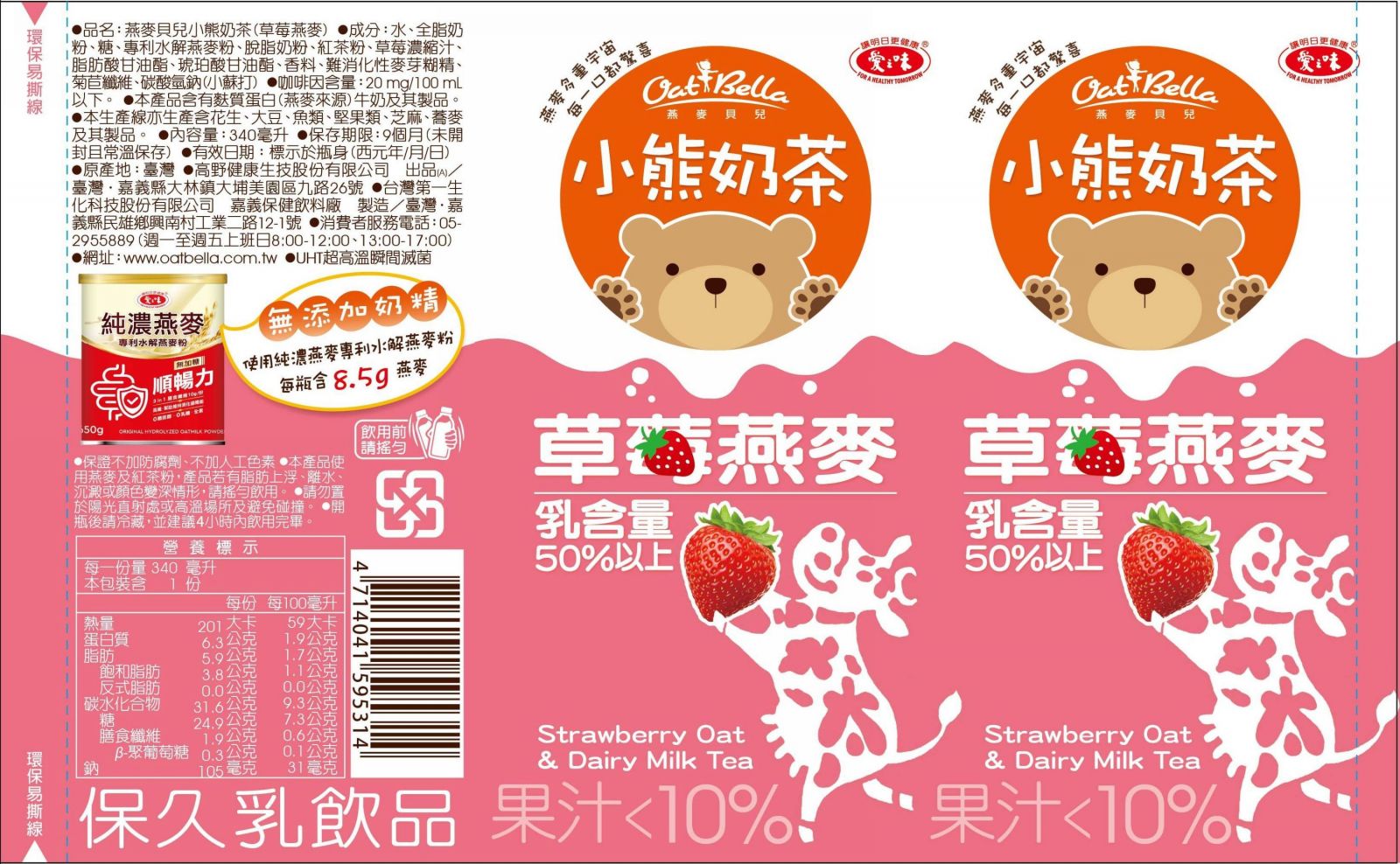 燕麥貝兒小熊奶茶(草莓燕麥)