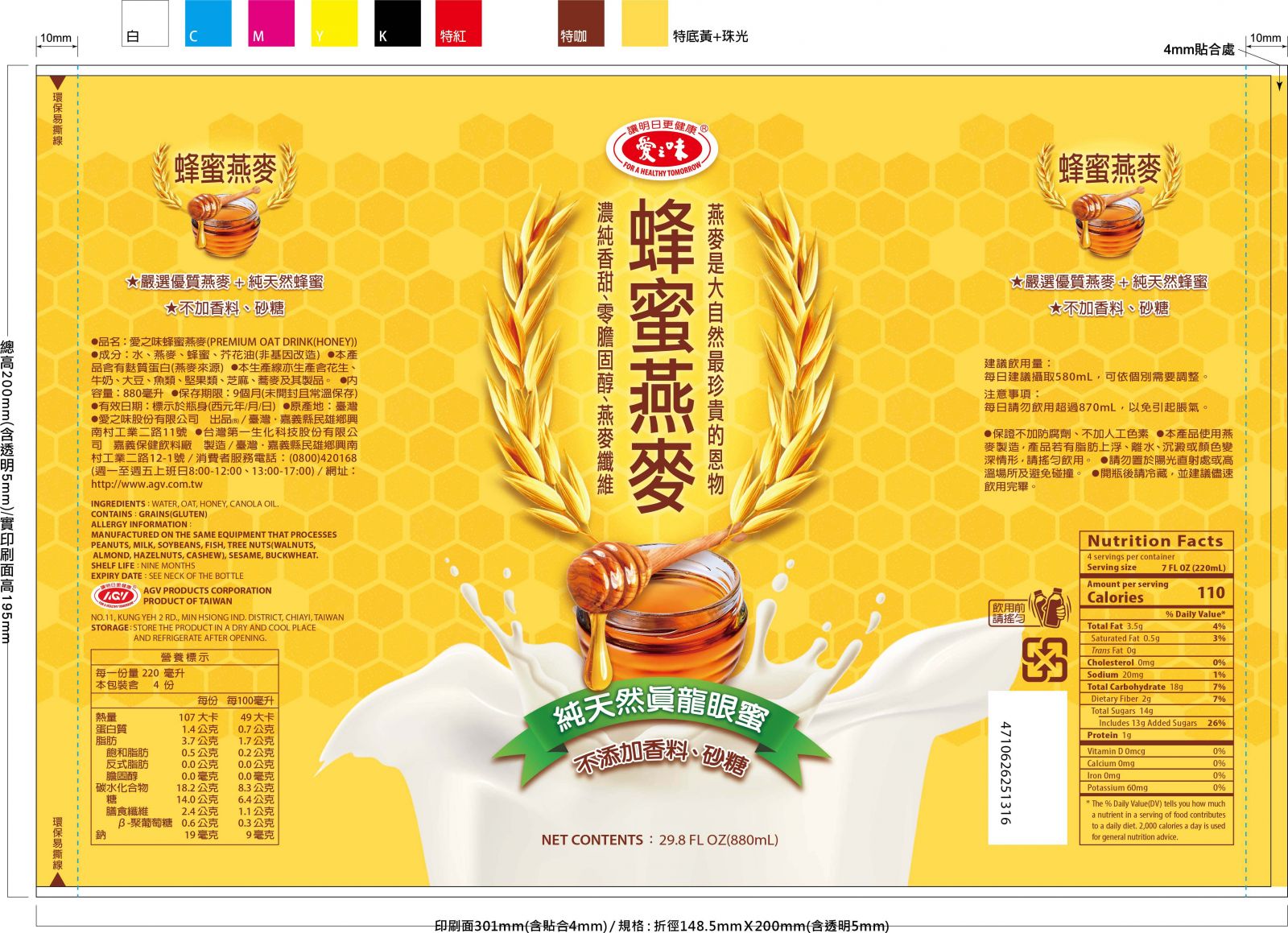 水、燕麥、蜂蜜、芥花油(非基因改造)